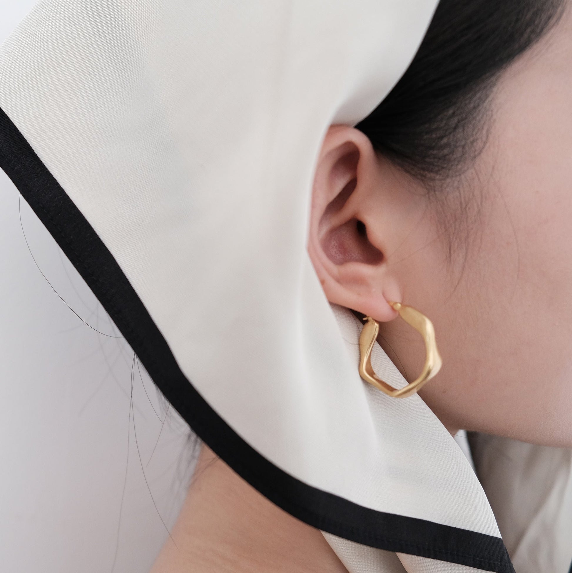 Gold Octagon Hoop Earring | Creole Huggie Earrings