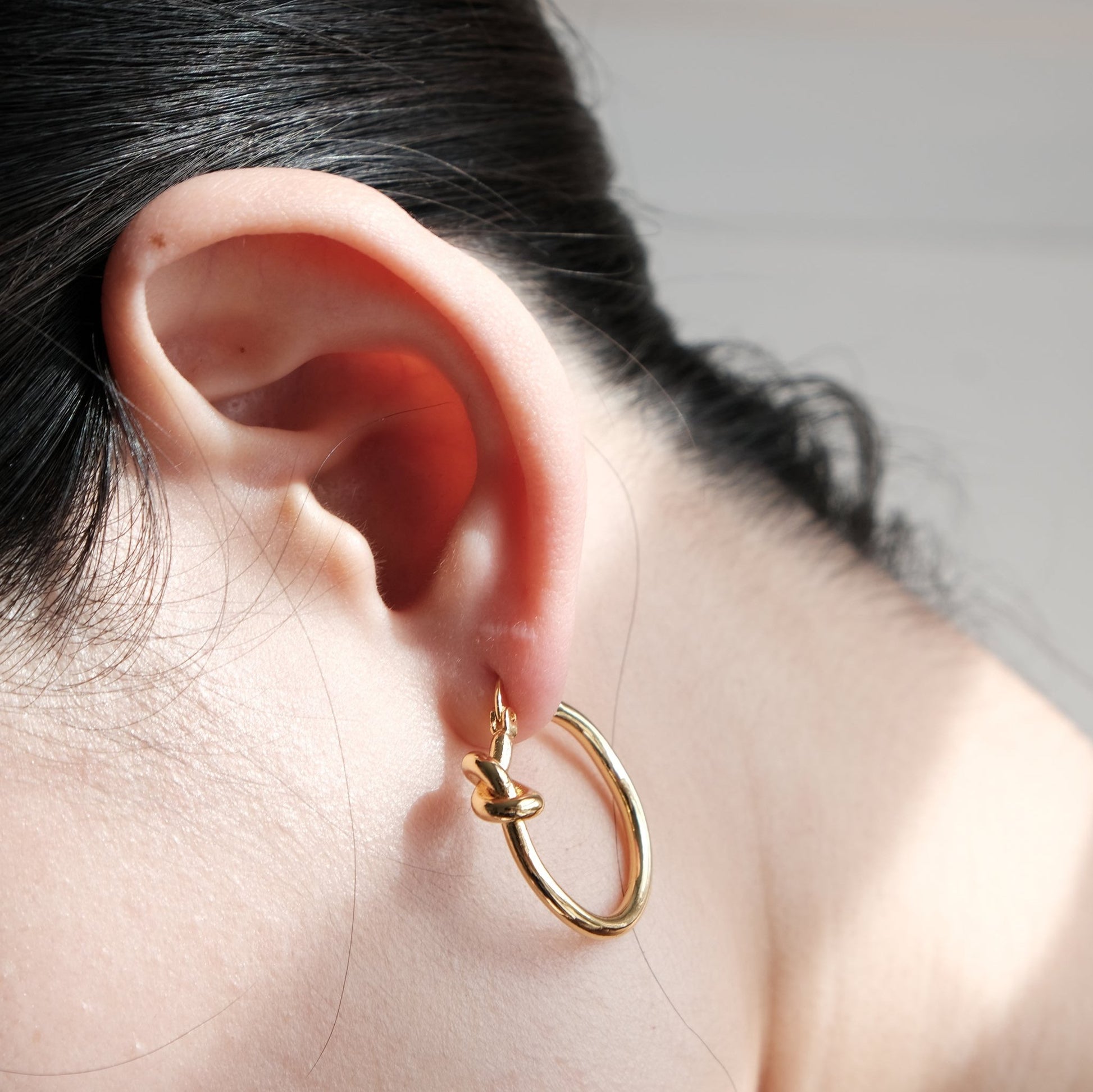 Silver & Gold Round Knot Earring | Bold Creole Hoop Knotted Earrings