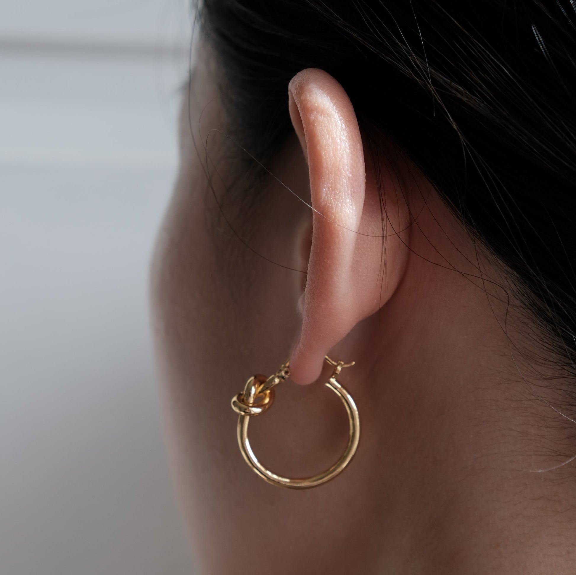 Discover the epitome of chic elegance with our simple knot hoop earrings. Crafted in a modern creole style, these earrings fuse minimalist design with a touch of extravagance. Elevate your look effortlessly, exuding a sense of contemporary charm that's destined to turn heads.