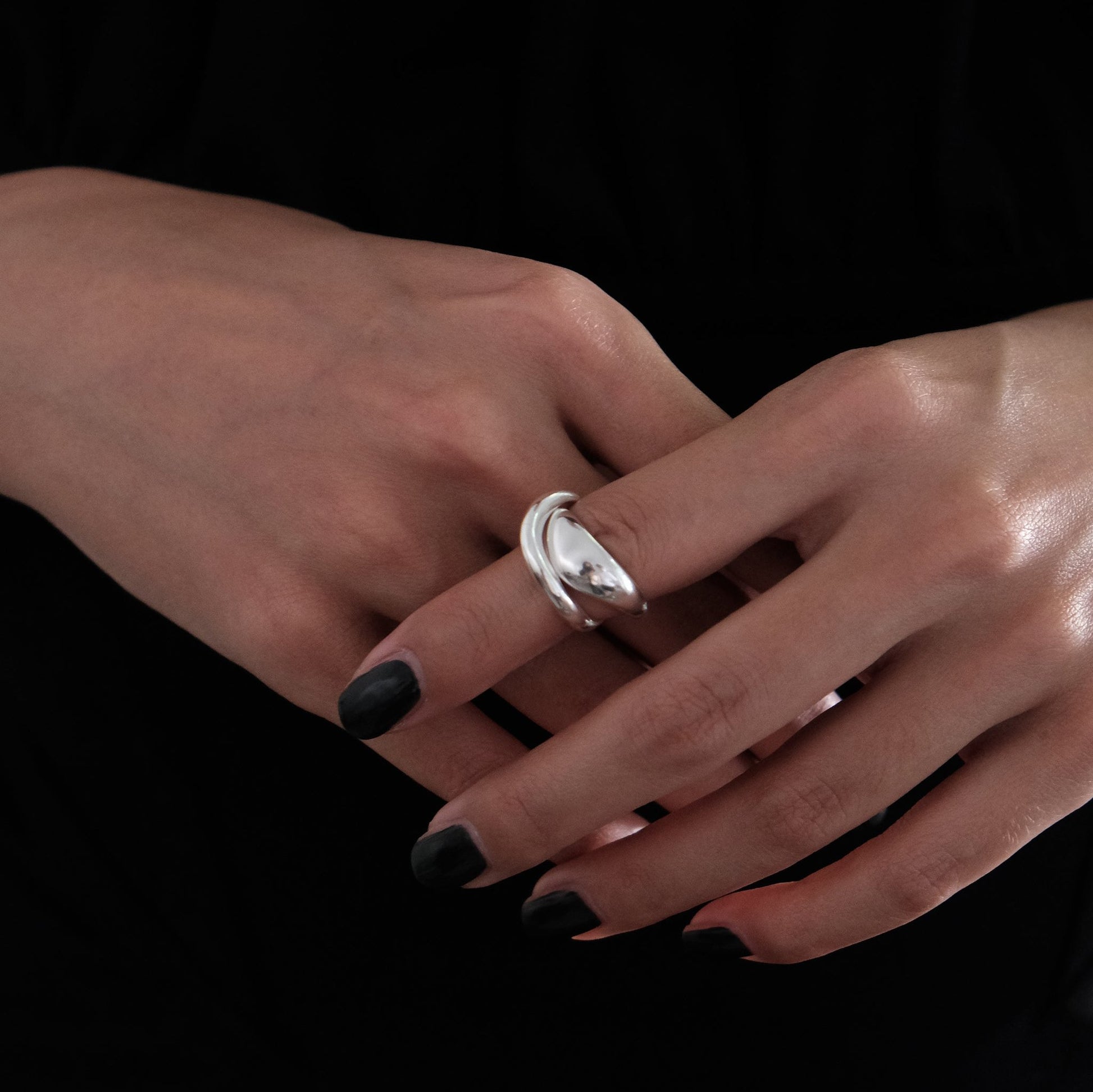 Sterling Silver Dome Ring | Crescent Stackable Open Adjustable Rings