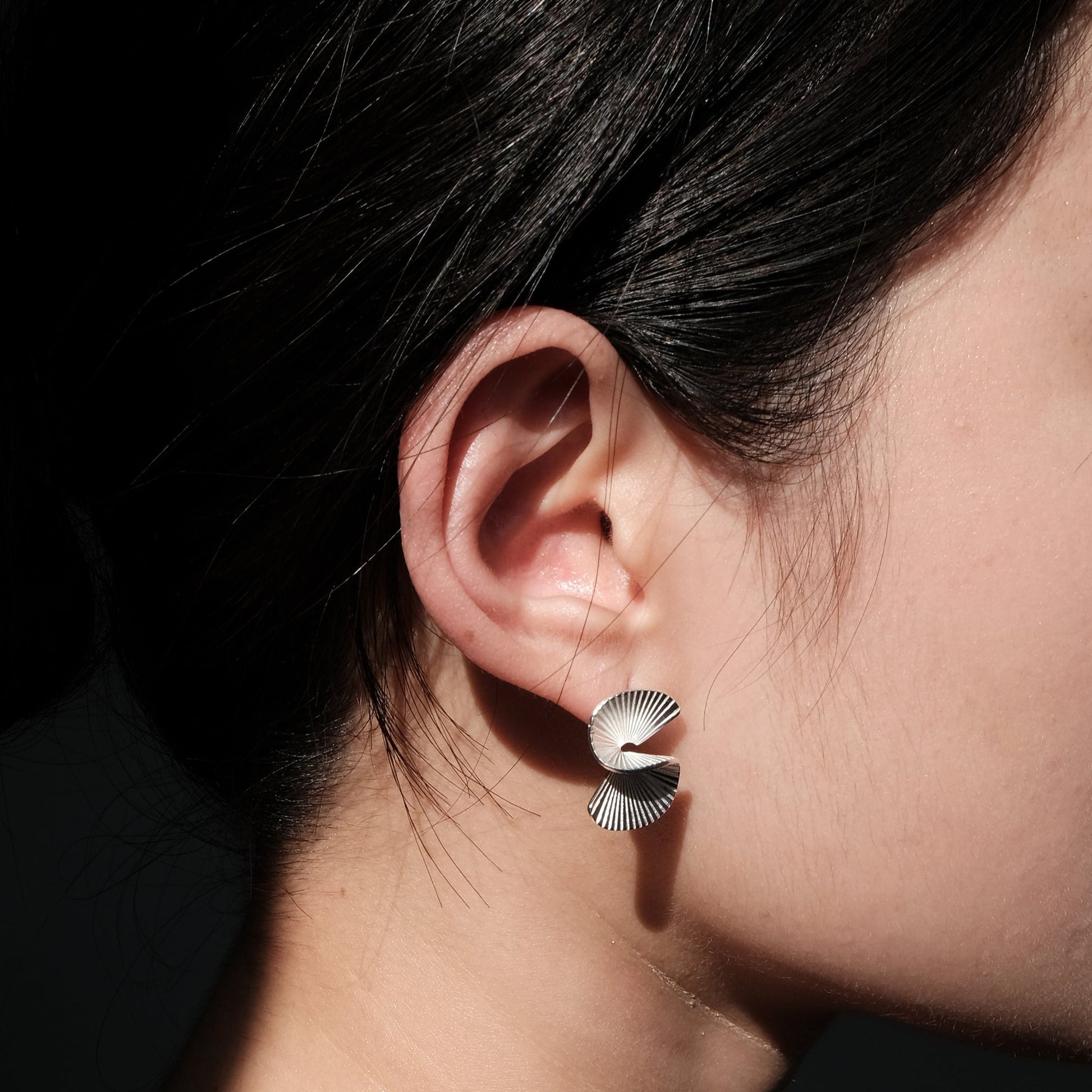 Sterling Silver Swirl Earrings | Fan Shape Twisted Spiral Earrings